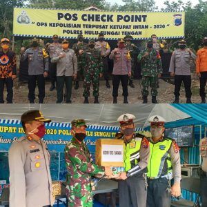 Tak hanya melaksanakan peninjauan ke sejumlah pos chek point batas kabupaten saja, Dandim 1002/Barabai maupun Kapolres HST juga menyerahkan beberapa bingkisan kepada personil yang terlibat dalam pengamanan tersebut.