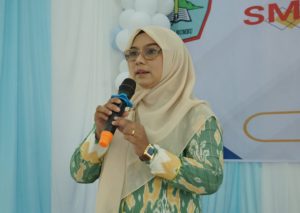 Kepala SMPN 3 Batulicin, Halimatus Sadiah, memberikan apresiasi tinggi terhadap pelaksanaan Kemah Jurnalistik PWI Tanah Bumbu.