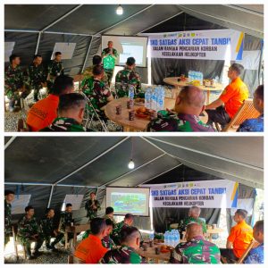 Komandan Kodim 1022/Tanah Bumbu, Letkol Inf Zierda Aulia Salam selaku Koordinator Satgas Aksi Cepat Tanbu, melaporkan secara langsung jalannya operasi pencarian dan evakuasi dari Posko Satgas Aksi Cepat di Kecamatan Mantewe, Rabu (04/09/2025).