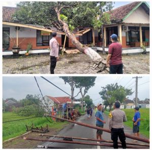 Gerak Cepat Polsek Warujayeng Tangani Dampak Angin Kencang di Tanjunganom