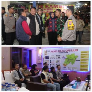 Obsesirakyat.com, Nganjuk – Kapolres Nganjuk AKBP Henri Noveri Santoso, S.H., S.I.K., M.M., bersama Forkopimda Kabupaten Nganjuk melaksanakan kunjungan ke sejumlah Pos Pengamanan, Pos Pelayanan, serta Pos Terpadu Operasi Lilin Semeru 2025 sebagai bentuk dukungan dan motivasi kepada personel yang bertugas mengamankan perayaan Natal dan Tahun Baru, Rabu (31/12/2025).