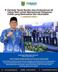 Obsesirakyat.com, Tanah Bumbu – Pemerintah Kabupaten Tanah Bumbu melakukan penandatanganan Naskah Kerjasama (MoU) dengan Ombudsman Republik Indonesia, Selasa (27/1/2026) di Jakarta. Kerja sama ini menjadi wujud komitmen bersama dalam mewujudkan tata kelola pemerintahan yang bersih, transparan, serta bebas dari praktik maladministrasi.