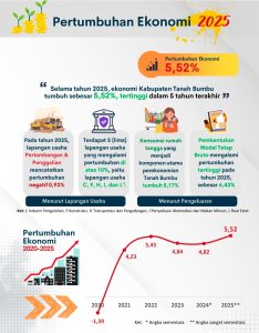 Perkembangan positif juga terlihat pada sektor ekonomi dan pengentasan kemiskinan. Pada tahun 2025, angka kemiskinan di Tanah Bumbu berhasil ditekan hingga 3,13 persen. Jumlah penduduk miskin tercatat menurun dari 14.677 jiwa pada tahun 2024 menjadi 13.812 jiwa pada tahun 2025.
