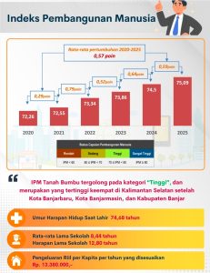 Peningkatan IPM tersebut dipengaruhi sejumlah indikator pembangunan manusia yang menunjukkan perkembangan positif. Umur Harapan Hidup masyarakat mencapai 74,68 tahun, sementara Harapan Lama Sekolah berada di angka 12,80 tahun dan Rata-rata Lama Sekolah mencapai 8,44 tahun. Selain itu, pengeluaran riil per kapita masyarakat tercatat sebesar Rp13,38 juta per tahun.